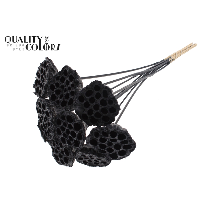 Αποξηραμένοι διακοσμητικοί καρποί λωτού σε μαύρη απόχρωση, ιδανικοί για δημιουργία ιδιαίτερων διακοσμητικών συνθέσεων, στολισμό εκδηλώσεων, διακόσμηση βιτρίνας ή τοποθέτηση σε βάζα και διακοσμητικά κασπώ. Οι φυσικοί καρποί λωτού έχουν βαφτεί σε μαύρο τόνο, προσφέροντας κομψό και μοντέρνο αισθητικό αποτέλεσμα. Η χαρακτηριστική κυψελωτή δομή τους δημιουργεί έντονη υφή και οπτικό ενδιαφέρον μέσα σε συνθέσεις με αποξηραμένα λουλούδια ή άλλα φυσικά υλικά. Αποτελούν ιδανική επιλογή για ανθοπωλεία, καταστήματα δώρων και επαγγελματικές διακοσμήσεις.