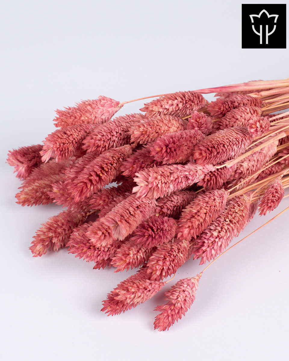 Αποξηραμένο διακοσμητικό Phalaris σε ροζ απόχρωση, ιδανικό για δημιουργία κομψών διακοσμητικών συνθέσεων, διακόσμηση βιτρίνας, στολισμό εκδηλώσεων ή τοποθέτηση σε βάζα και διακοσμητικά κασπώ. Το Phalaris ξεχωρίζει για τα μικρά, στρογγυλεμένα στάχυά του που προσθέτουν ιδιαίτερη υφή και φυσικό όγκο σε κάθε σύνθεση. Η έντονη ροζ απόχρωση δημιουργεί φρέσκο και φυσικό αισθητικό αποτέλεσμα, ταιριάζοντας ιδανικά σε boho, natural και σύγχρονες διακοσμήσεις. Αποτελεί εξαιρετική επιλογή για ανθοπωλεία, καταστήματα δώρων και επαγγελματικές διακοσμήσεις.
