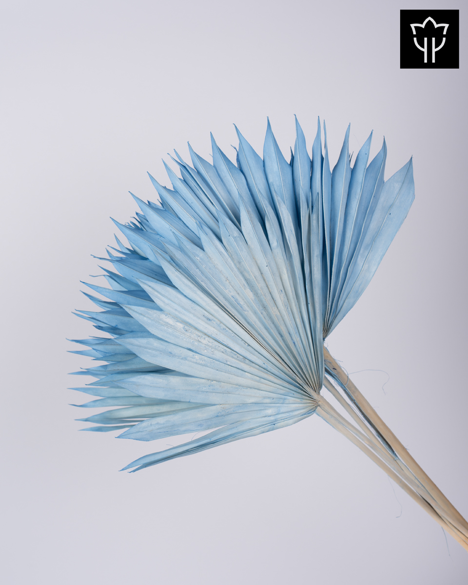 Αποξηραμένο διακοσμητικό Sun Spear σε μπλε απόχρωση, ιδανικό για δημιουργία μοντέρνων διακοσμητικών συνθέσεων, διακόσμηση βιτρίνας, στολισμό εκδηλώσεων ή τοποθέτηση σε βάζα και διακοσμητικά κασπώ. Το Sun Spear ξεχωρίζει για το χαρακτηριστικό σχήμα βεντάλιας που δημιουργεί έντονη γεωμετρική γραμμή και εντυπωσιακό όγκο μέσα σε κάθε σύνθεση. Η απαλή μπλε απόχρωση προσθέτει κομψό και ρομαντικό αισθητικό αποτέλεσμα, ταιριάζοντας ιδανικά σε boho, romantic και contemporary διακοσμήσεις.